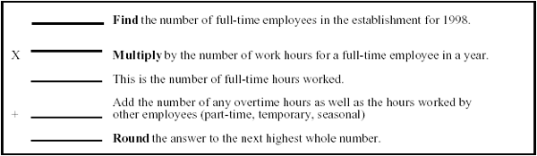 Ask the employer for the total hours worked and the average number of employees at the establishment for 1998. If the numbers are not available, the values can be estimated as described below.