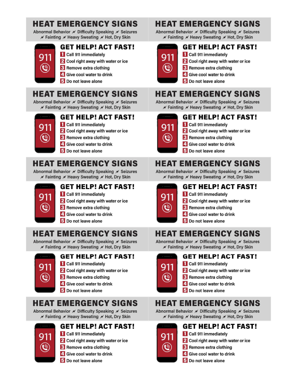 Training is vital to improve understanding of heat exposure risks, prevention actions, and first aid. Become familiar with the symptoms of heat illness.