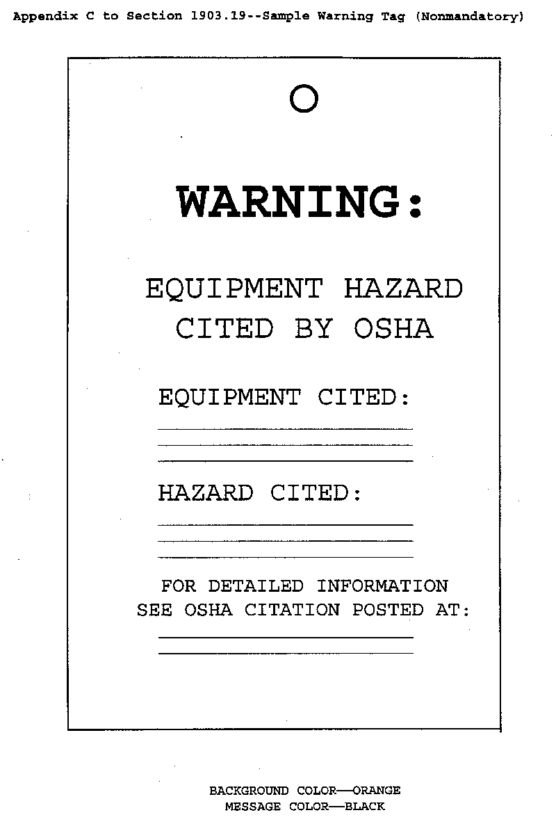 Note to paragraph (i)(2): Non-Mandatory Appendix C contains a sample tag that employers may use to meet this requirement.