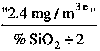 The formula for the PEL for coal dust with less than 5 % quartz (respirable fraction) is incorrectly listed as: