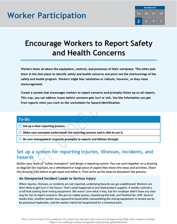 Encourage workers to report safety and health concerns: