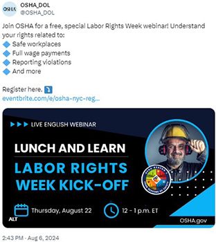 August 16, 2024 • OSHA's twice-monthly bilingual newsletter about workplace safety and health.
