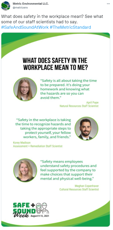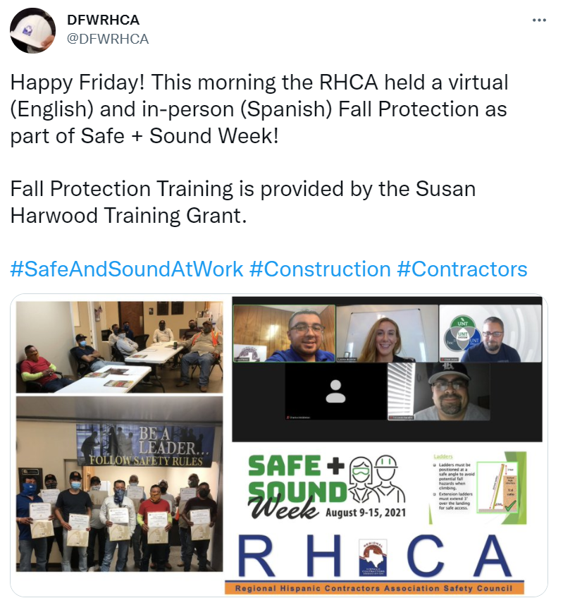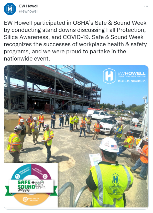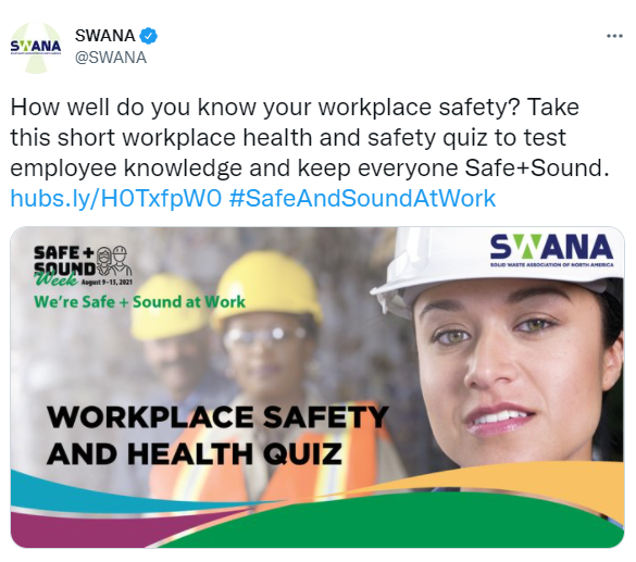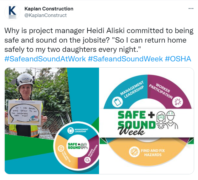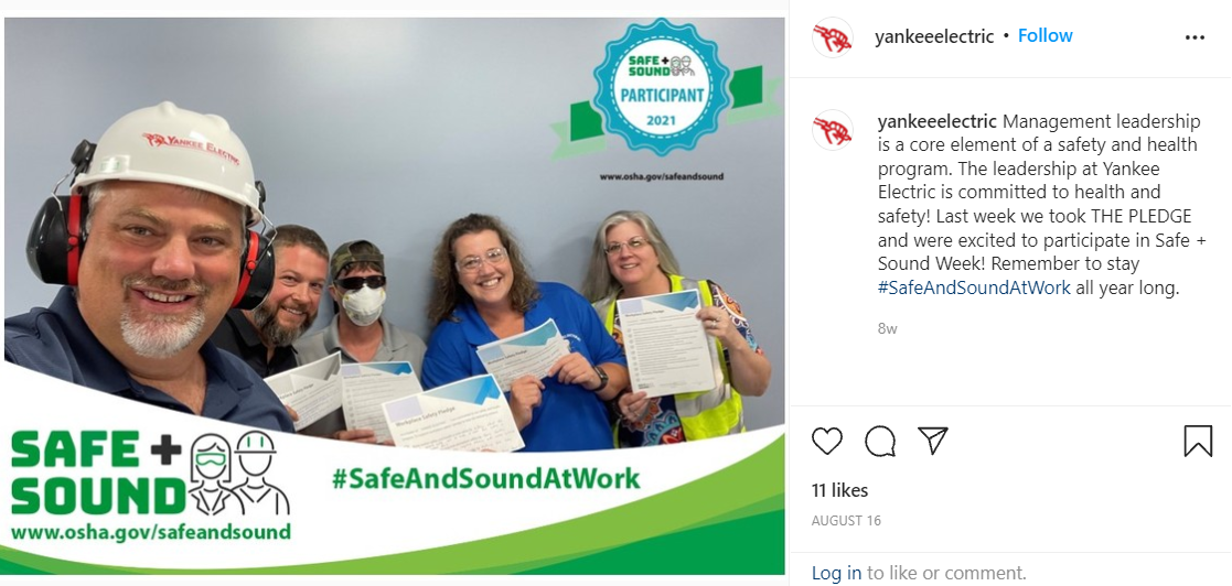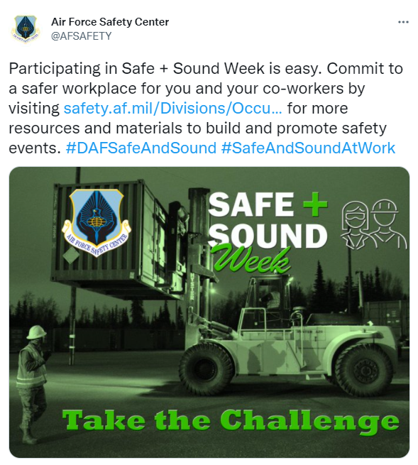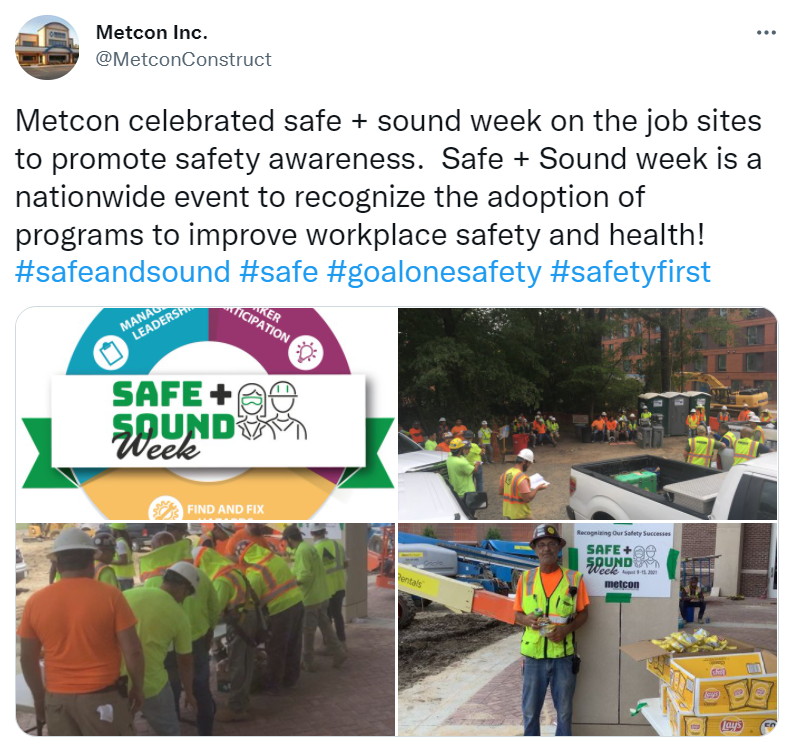 Year in Review 2021. 228 partners with 7 organizers supported our goal of a safety and health program in every workplace. 3,200,000 workers received safety and health resources from 5,306 businesses that held Safe + Sound Week events. Businesses from 50 states, 5 territories, and 75 countries participated. 94,000 participants received regular safety and health messages. 1,700 people on social media mentioned Safe + Sound Week a total of 1,600 times reaching 11,900,000 followers.