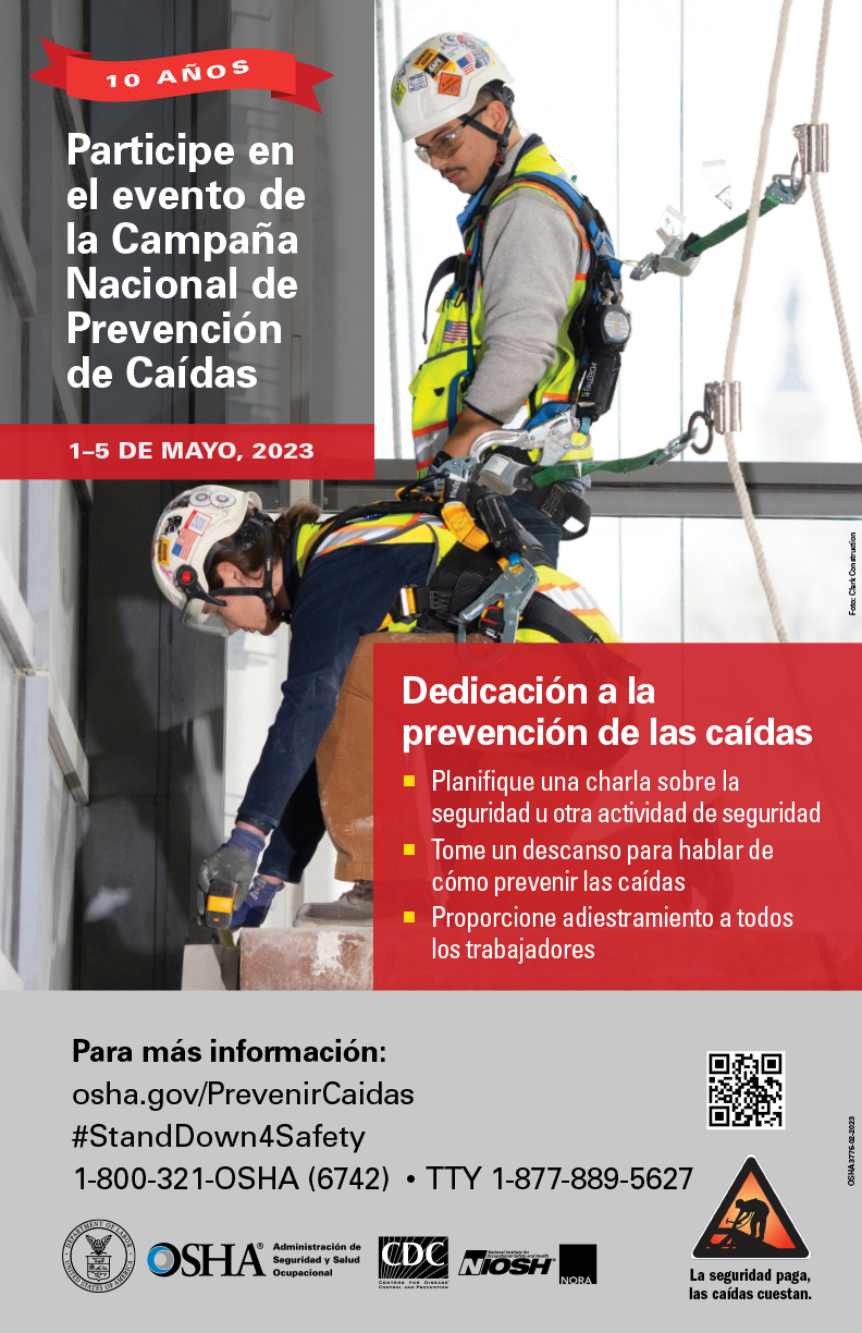 - Spanish webinar to safely utilize personal fall protection systems and preparing an emergency response plan (April 26, 2023).