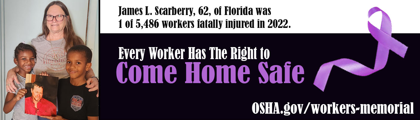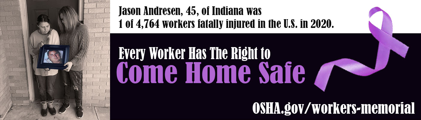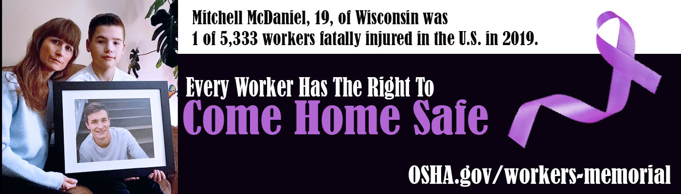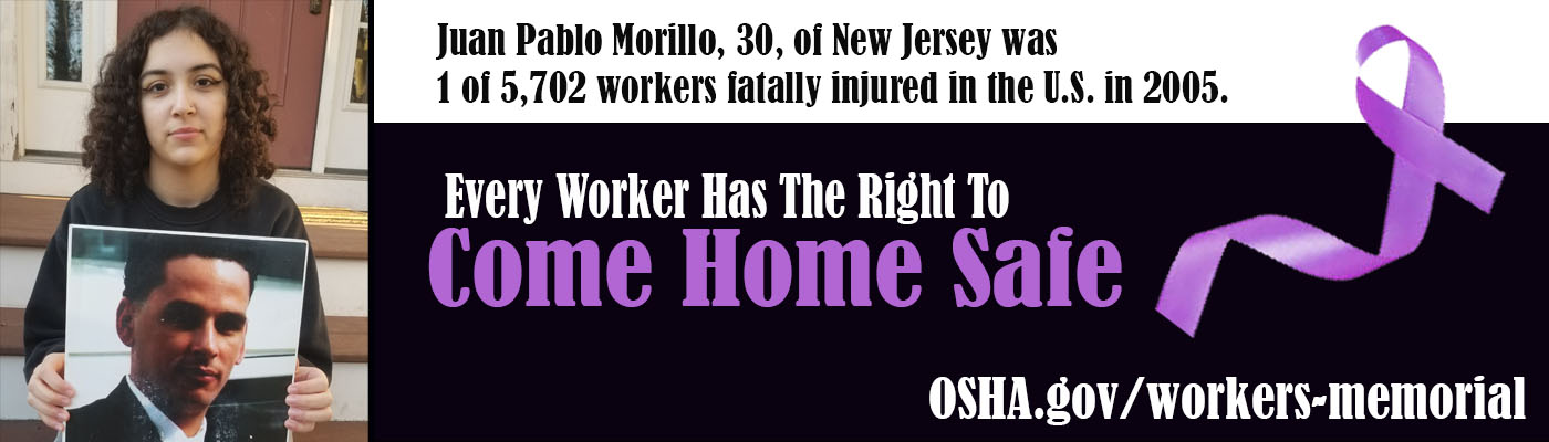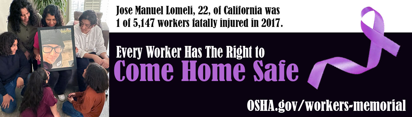 If you have lost a loved one due to a work-related incident, we invite you to share his/her photograph with OSHA at remembrance@dol.gov, as we recognize them on our virtual Workers Memorial Tribute Wall.