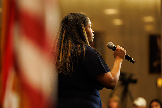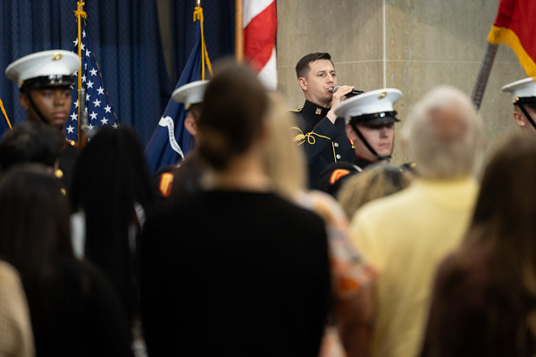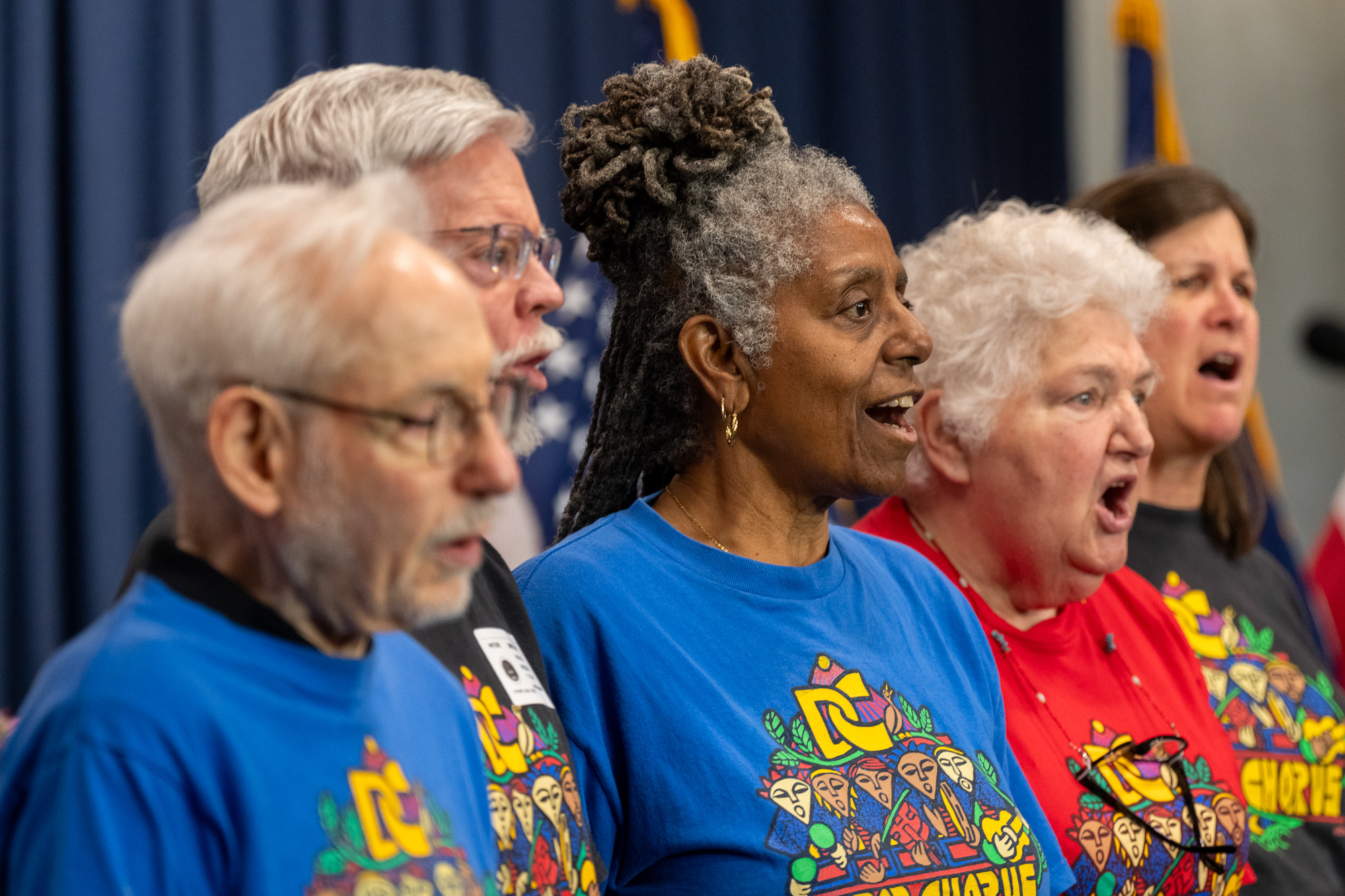 The D.C. Labor Chorus sings our National Anthem as the U.S. Air Force Honor Guard presents our nation's colors.