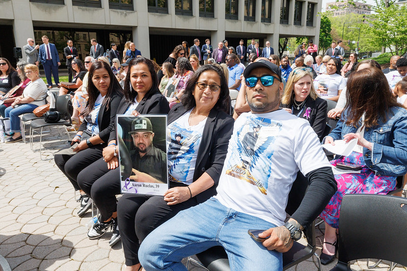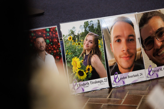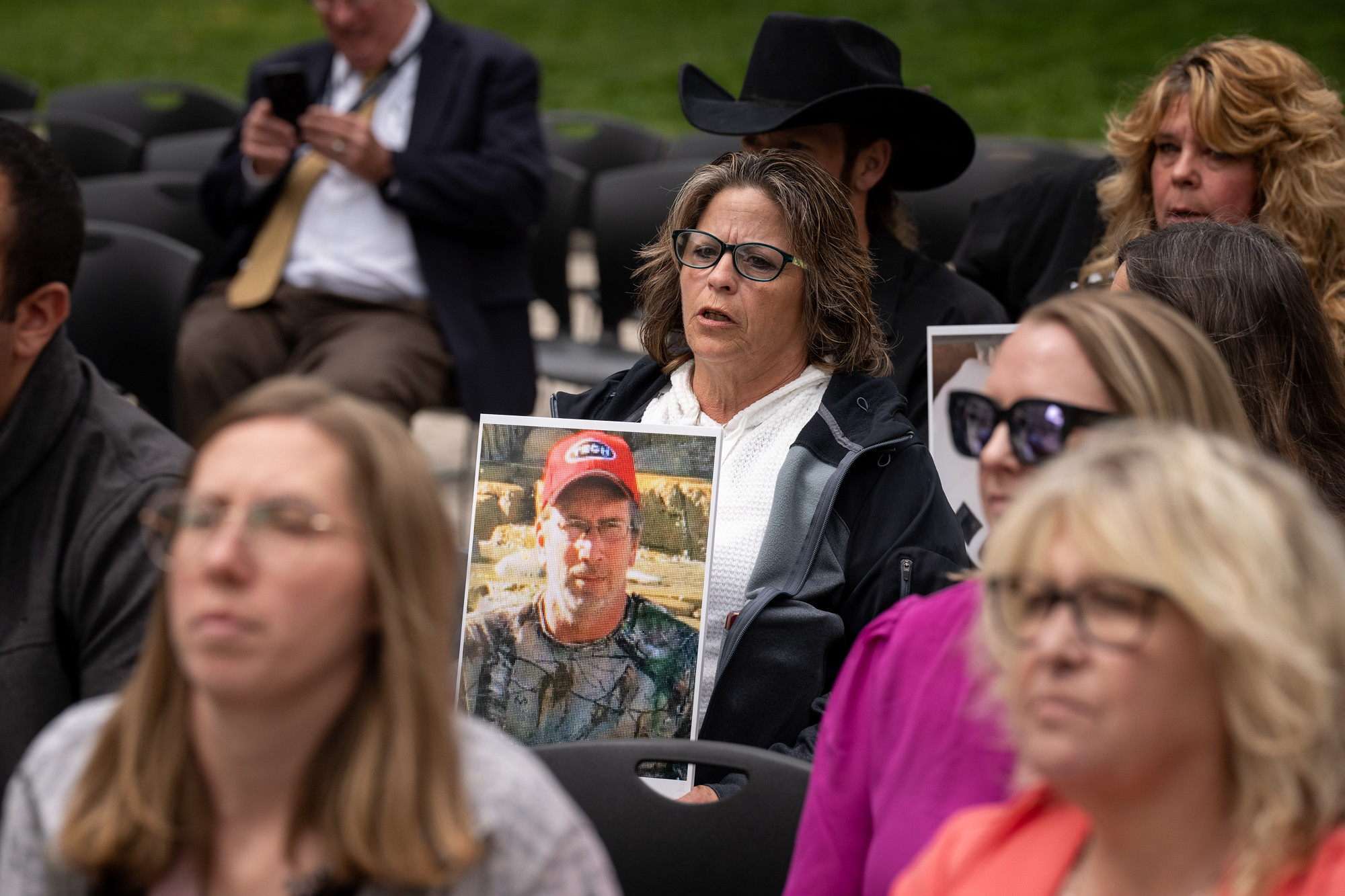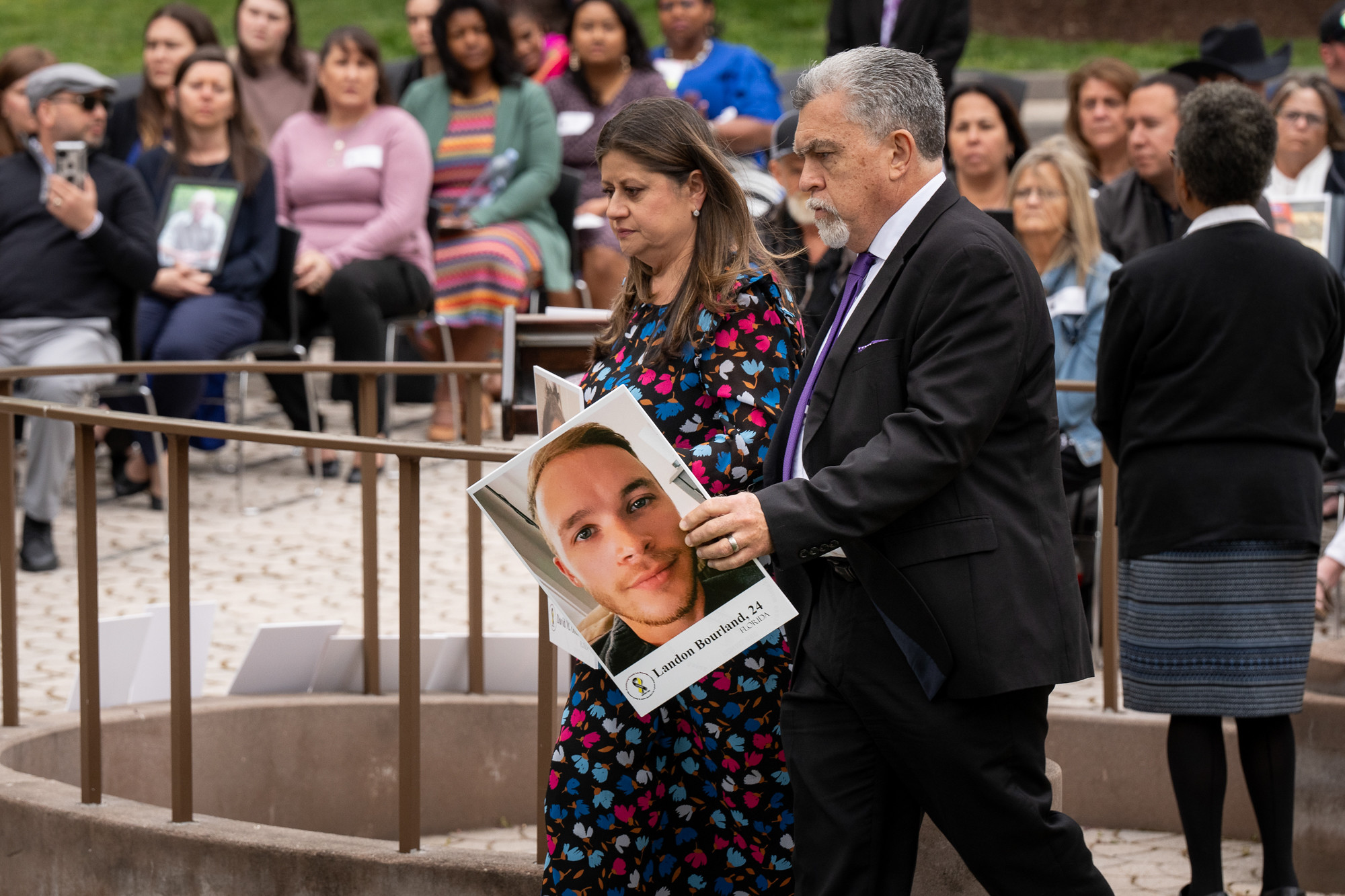 A picture is worth a thousand words. Photograph of fallen worker Shawn J. Pedregon, 51 of Texas held by his wife Christine Waukau Pedregon as she hears the stories of other fallen workers.
