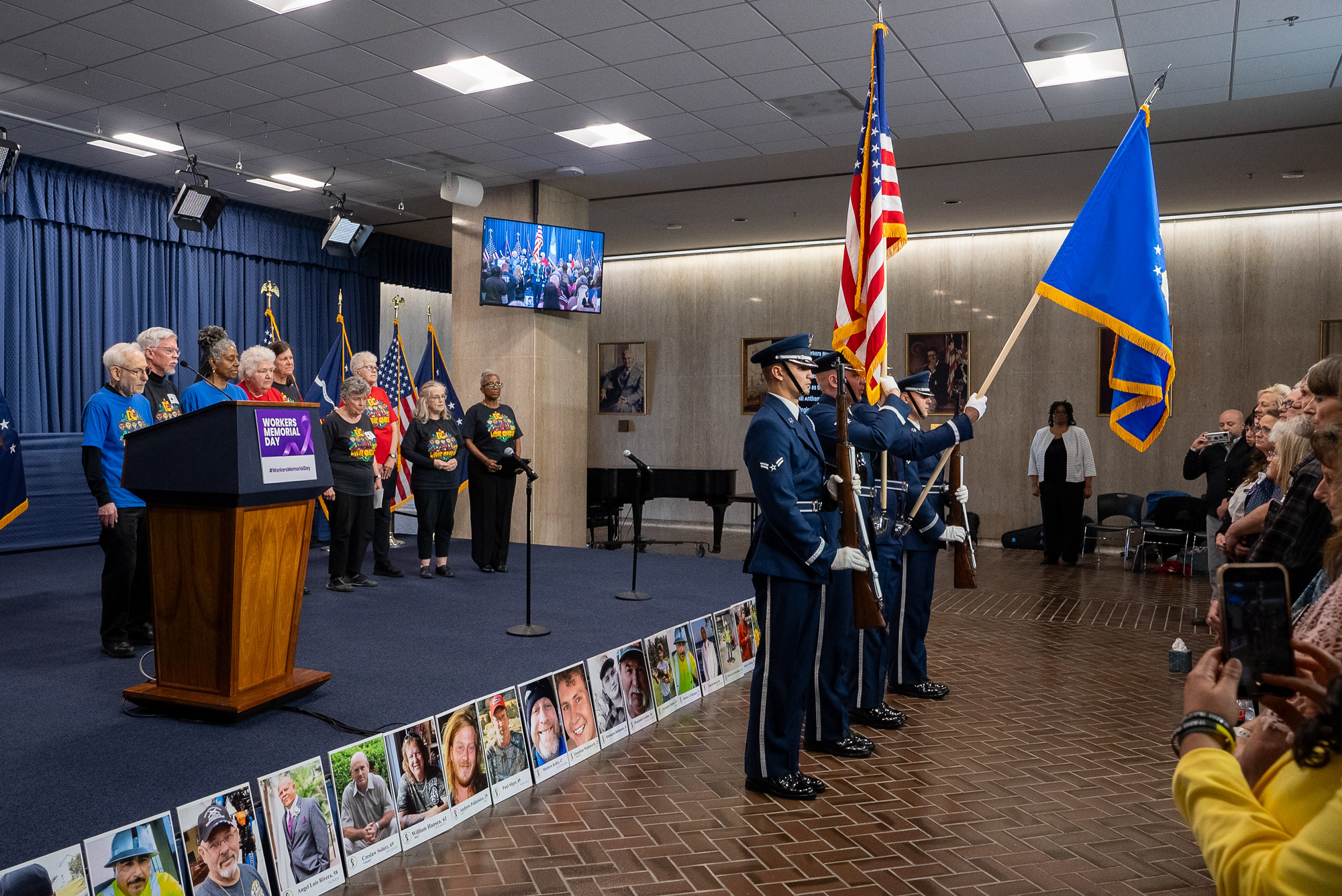U.S. Air Force Honor Guard presents our nation's colors to begin our 2024 Workers Memorial Day Ceremony.