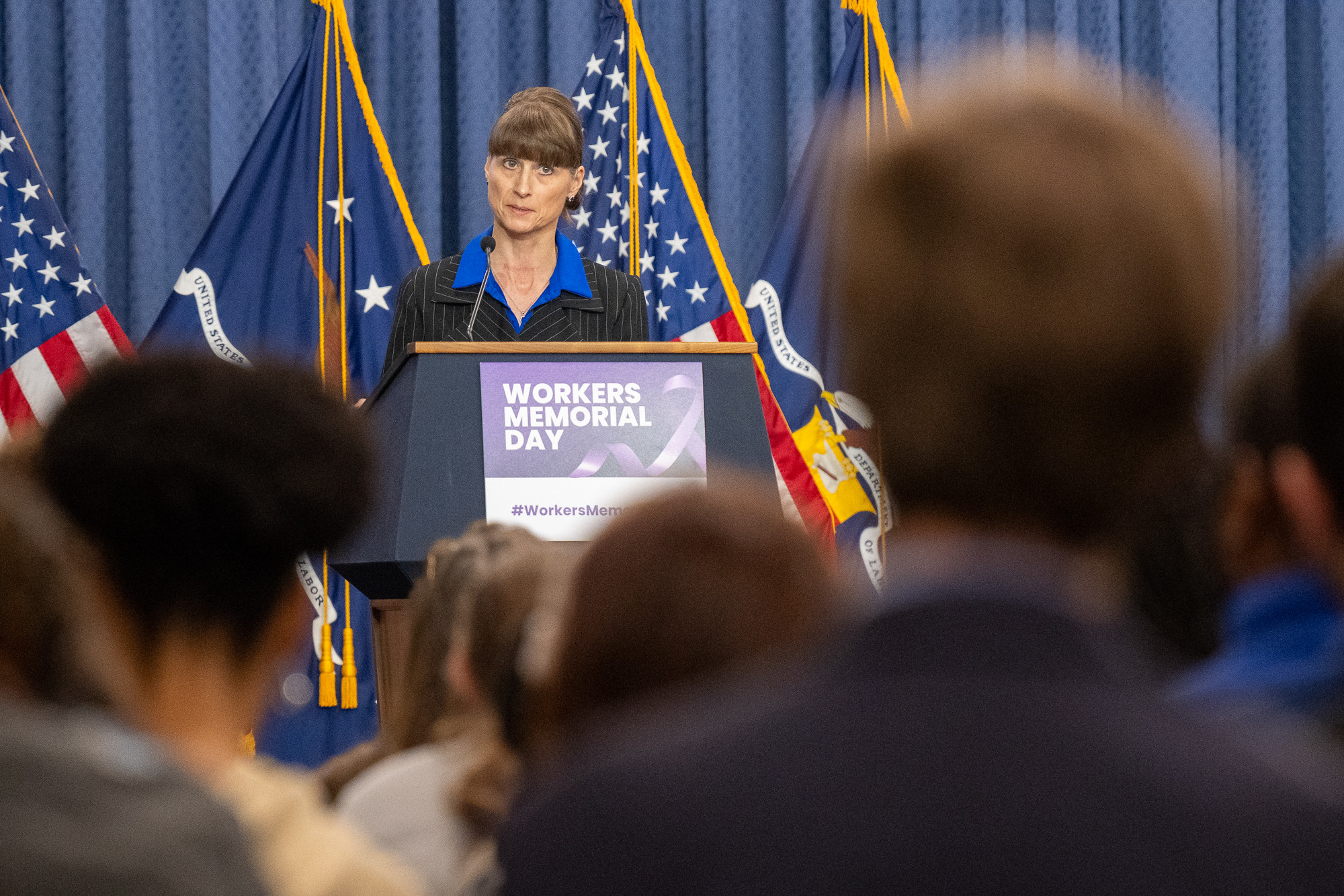 Stacy Sebald, mother of fallen worker Mitchell McDaniel, 19 of Wisconsin joined the Workers Memorial Day Ceremony to share her loss and the impact it has had on her life.